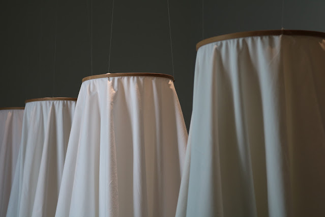 The installation Vestigios biográficos (2017), in which Maria José Planells, from a series of bedsheets held by embroidery frames and photographs of a fragmented body, reflects on the construction of her own identity, effected by a reality that is changing, mutable, transitory and ephemeral. The artist understands identity as something unfinished and, therefore, always open and temporary, conditioned by each historical moment. These elements conceptually address the issue of the ruin of the modern subject, which brings with it the collapse of traditions and customs that previously prevailed.